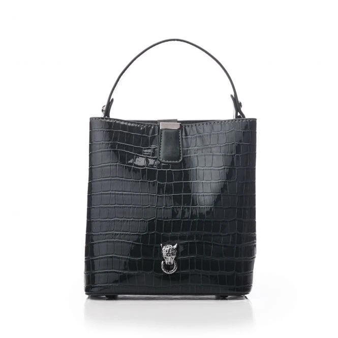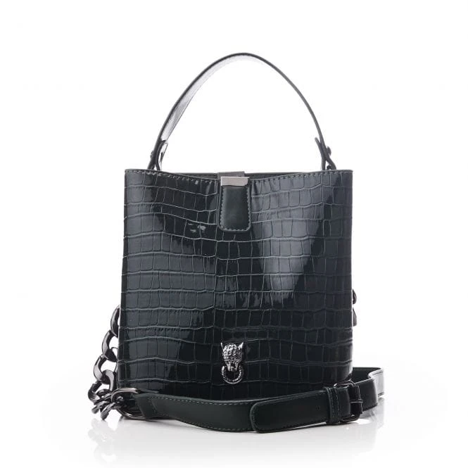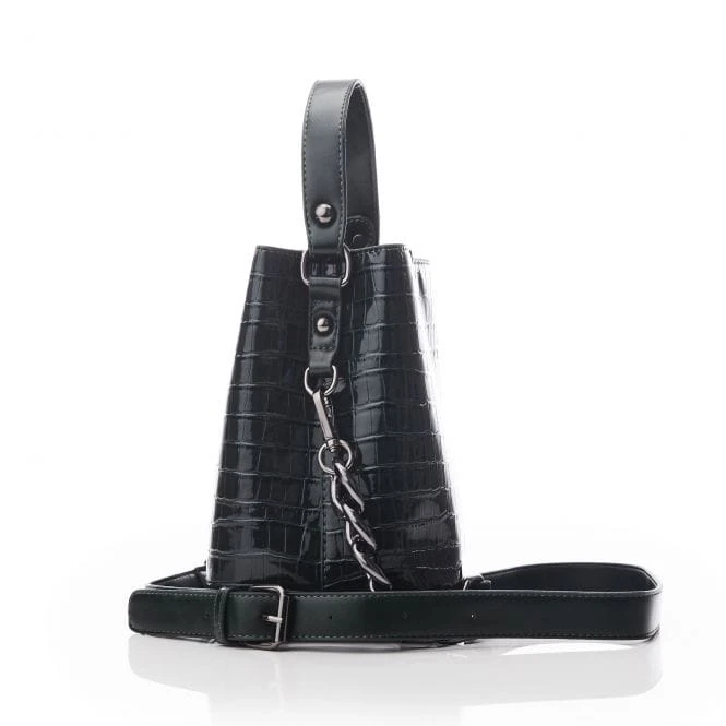 Add Adriana to your bag collection. This polished croc bucket bag features a cross body strap, allowing for versatile wear. The magnetic stud fastening keeps your essentials secure, whilst the base studs protect the bottom of the bag.