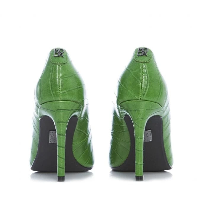 Dress up with Daniela. Complete with the perfect heel height to create a silhouette, whilst remaining comfortable. The shape of the toe has also been designed to offer a powerful point whilst still allowing enough room for a suitably snug fit. Subtle padding, a leather sock and lining add to the experience of the shoe. Style this croc embossed heel with tailored trousers and a blazer.