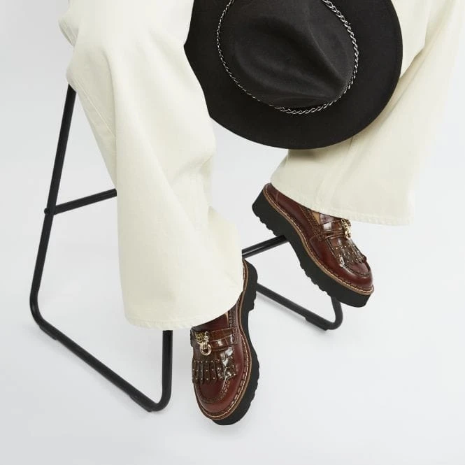 Elevate your everyday shoe collection with Evelina. This must have modern loafer features our iconic Larry the Leopard whilst the leather finish adds to the luxe vibe. We love the contrast stitch detail and the classic fringe finish. Pair this slip on style with your favourite jeans a t shirt for a chic off duty vibe.